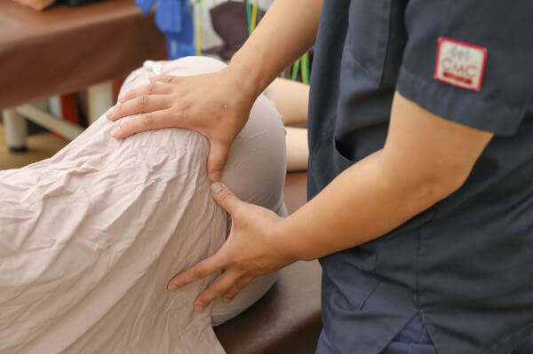 お腹に負担をかけない体勢とやさしい手技で、安心して受けていただけます。